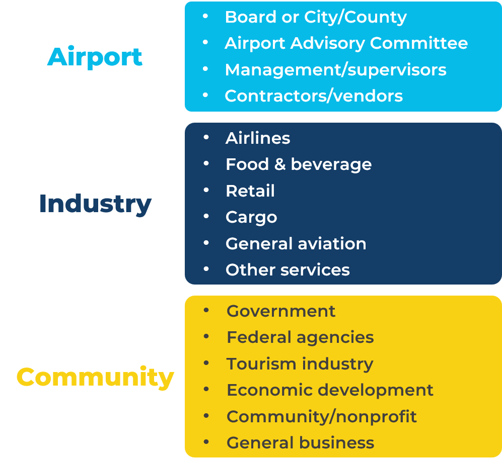 These 16 stakeholders are allocated into three separate stakeholder groups: Airport, Industry and Community.