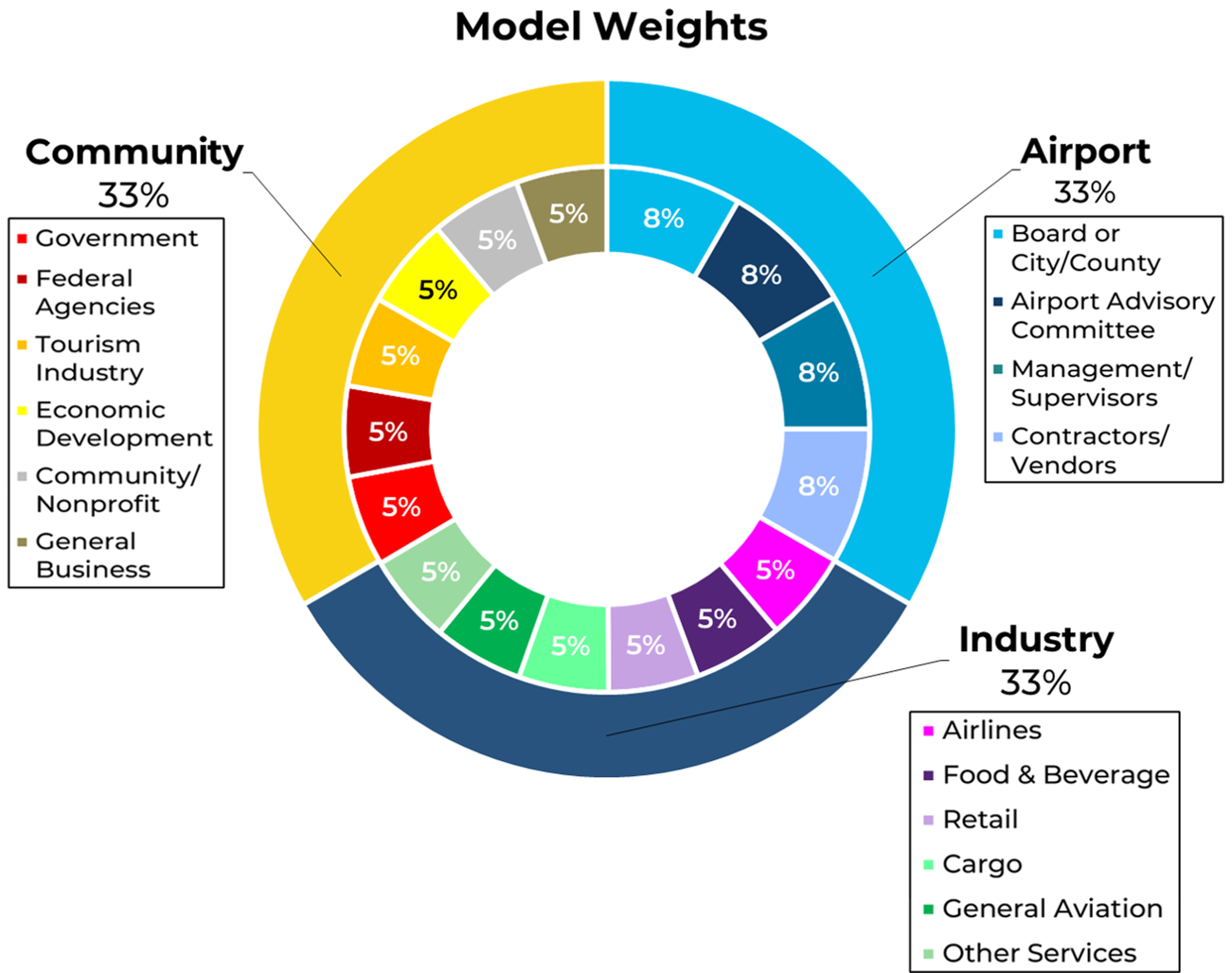 The weighting structure is required to compare airports, create tier averages, and prevents a single stakeholder category from overly effecting the results.